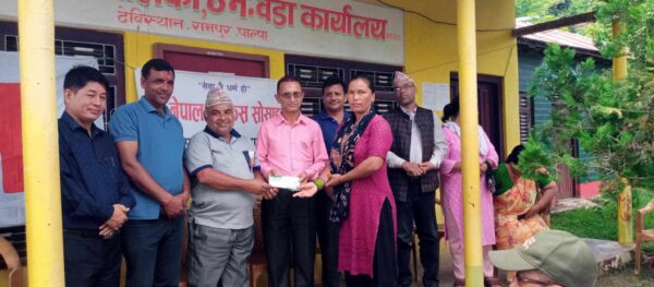 उक्त ९ घरपरिवारलाई नेपाल रेडक्रस सोसाइटी उपशाखा रामपुरले वैशाख २४ गते दैनिक जीवनमा आवश्यक पर्ने लत्ता कपडा ओड्ने ओछ्याउने खाना पकाउने जस्ता राहत सामग्री हस्तान्तरण गरेको थियो भने आज सोही परिवारलाई विभिन्न संघसंस्था देश तथा विदेशबाट गरि ९४ जनाबाट संकलन भएको रकम रु १ लाख १३ हजार नगद हस्तान्तरण गरेको हो।