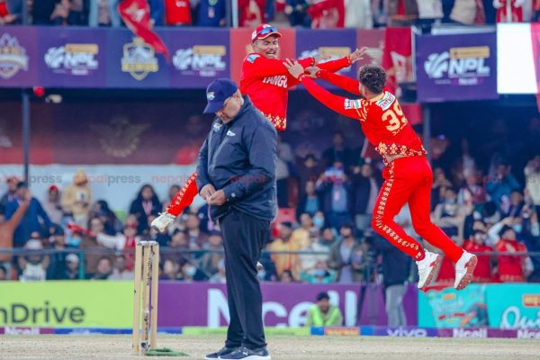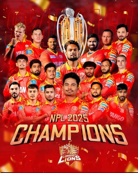 उपाधि जितेसँगै लुम्बिनी लायन्सका खेलाडीहरूले त्रिवि रंगशालामा एकअर्कासँग खुसी साटासाट गरेका थिए ।