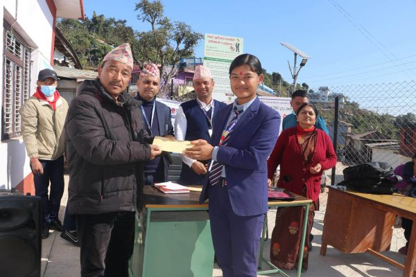 गणपति माध्यमिक विद्यालय कक्षा १० की अभिभावकविहीन छात्रा सुरक्षाथापाले शैक्षिक सामग्री र नगद सहयोगले पढाइमा ठूलो राहत पुगेको बताउनुभयो।