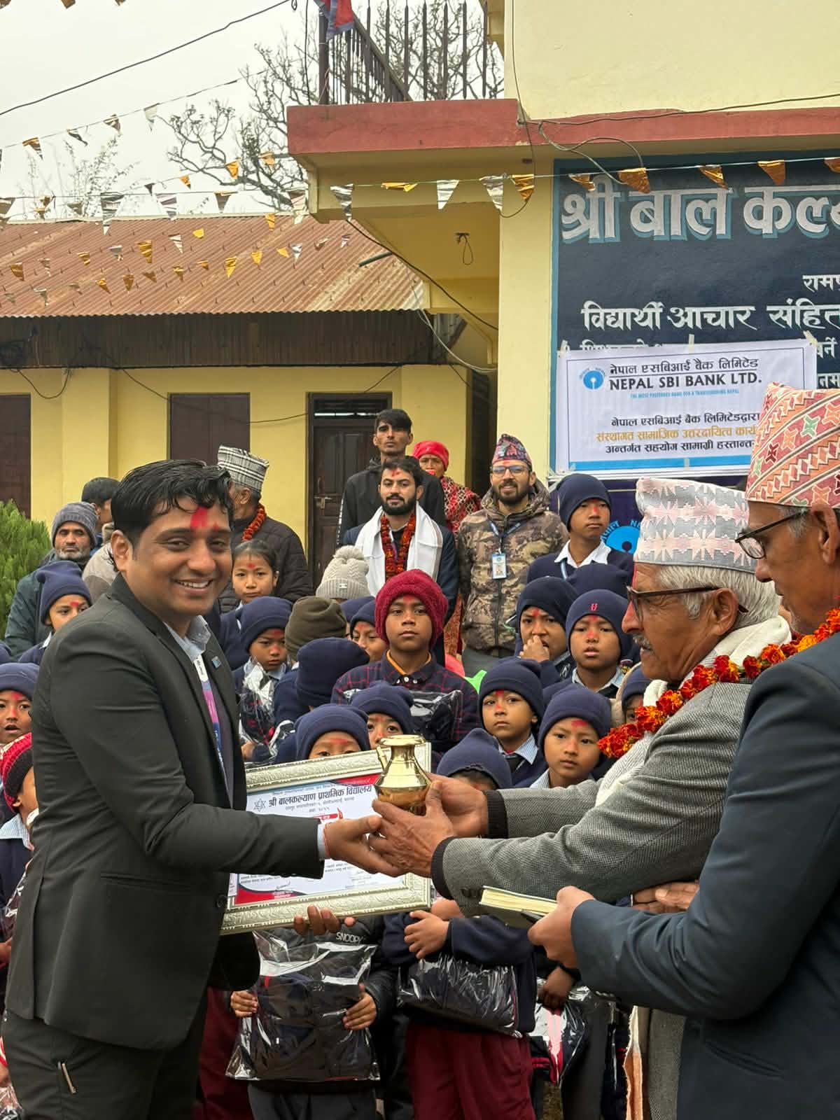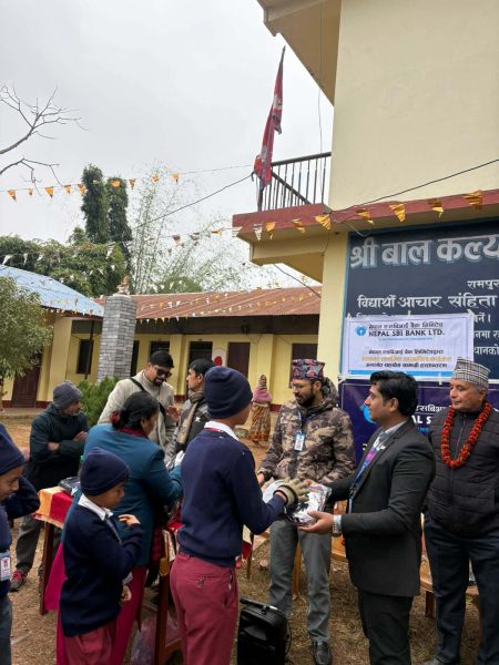संस्थागत सामाजिक उत्तरदायित्व (CSR) कार्यक्रमअन्तर्गत एसबीआई बैंक लिमिटेडले पाल्पाको रामपुर नगरपालिका–५ सानीअमराईस्थित बालकल्याण प्राथमिक विद्यालयमा अध्ययनरत विद्यार्थीलाई न्यानो कपडा वितरण गरेको छ।
