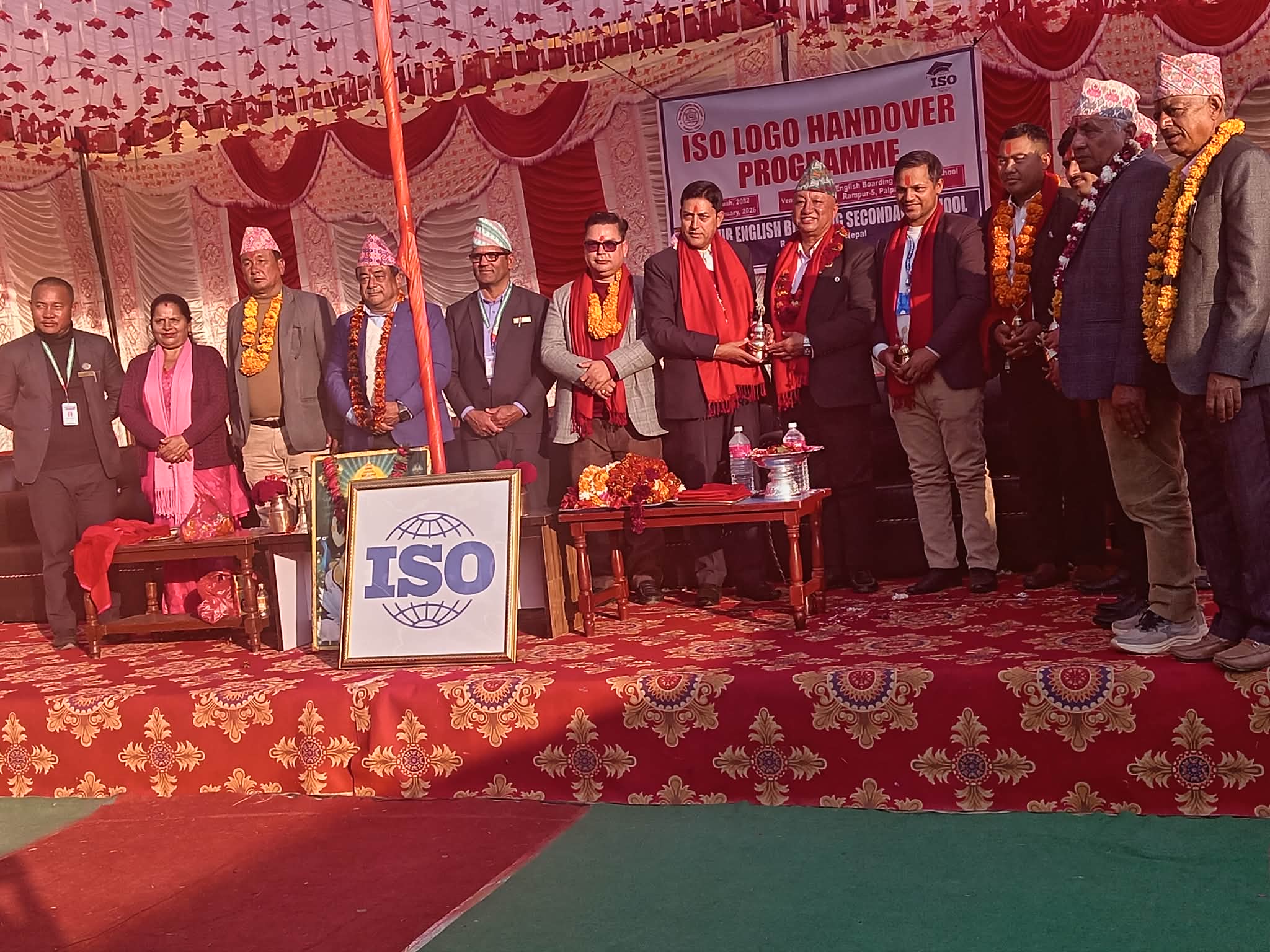 ग्लोबल क्वालिटी काउन्सिल नेपालका फोकल पर्सन सुदीप शर्माले विद्यालय परिवारलाई औपचारिक रूपमा आइएसओ लोगो हस्तान्तरण गर्नुभयो। उहाँले विद्यालयले शैक्षिक तथा भौतिक प्रगतिका २५ प्रतिशत मापदण्ड पूरा गरी आइएसओ लोगो प्राप्त गर्न सफल भएको जानकारी दिनुभयो।