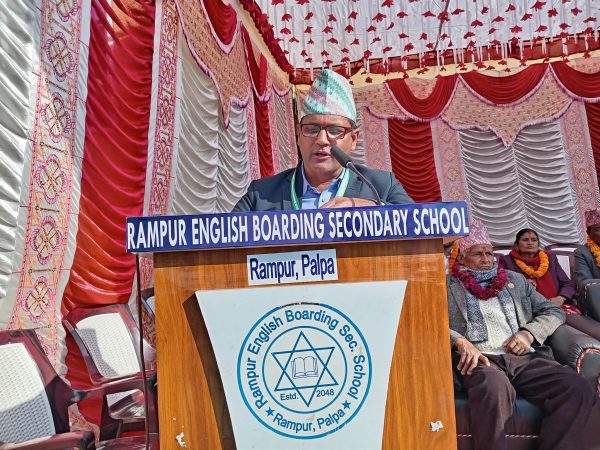 विद्यालय व्यवस्थापन समितिका अध्यक्ष गुरु प्रसाद रेग्मीको अध्यक्षतामा आयोजित कार्यक्रममा प्रमुख अतिथि लुम्बिनी प्रदेशसभा सदस्य तथा अर्थ, उद्योग तथा पर्यटन विकास समिति सभापति राजुप्रसाद श्रेष्ठले पानसमा बत्ती बालेर कार्यक्रमको उद्घाटन गर्नुभयो।