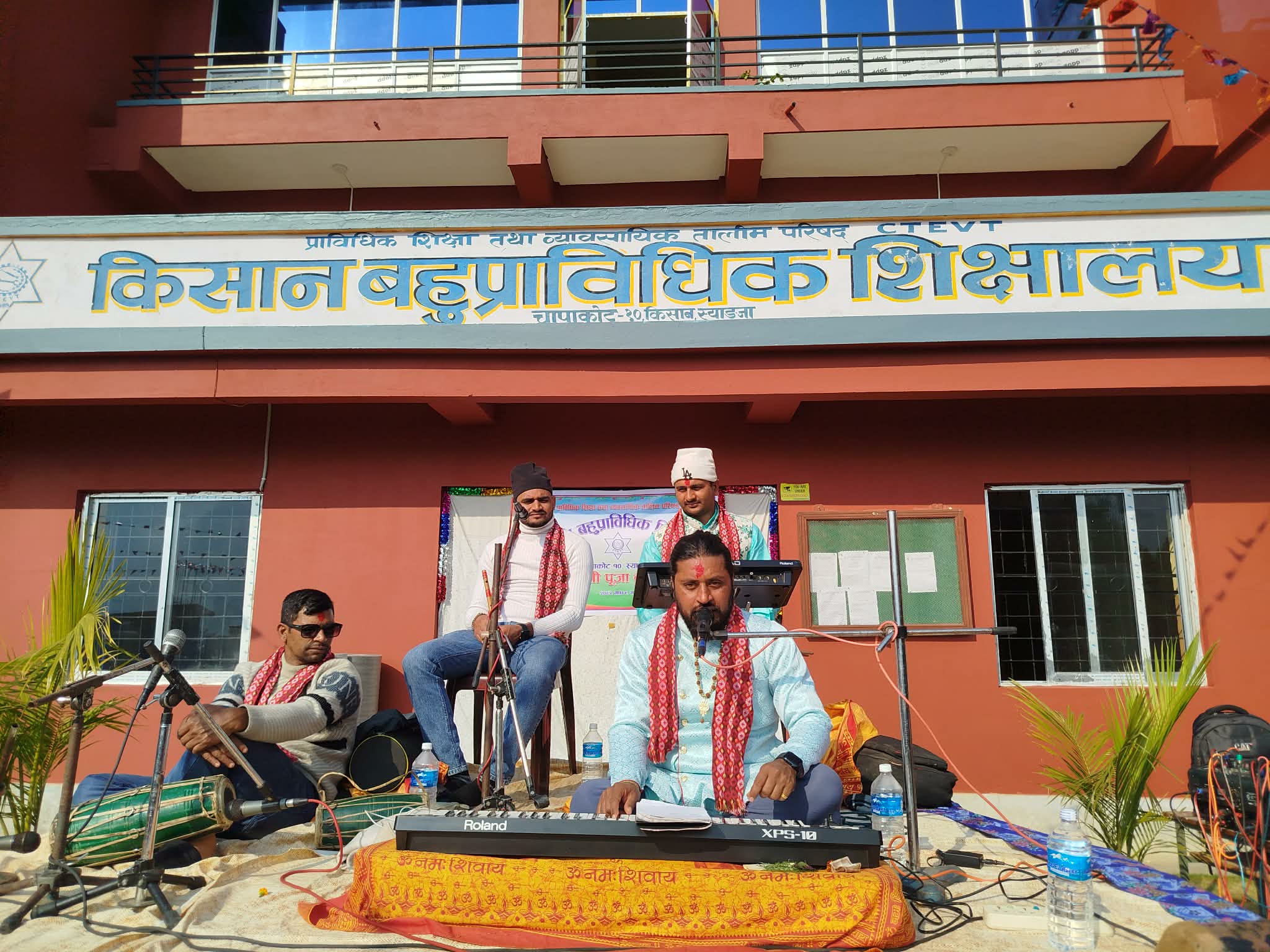 रामपुर, पाल्पा — माघ ९ गते श्रीपञ्चमी पर्वका अवसरमा विद्या, बुद्धि र सिर्जनात्मकताको प्रतीक देवी सरस्वतीको पूजा गरि किसान बहुप्राविधिक शिक्षालय, स्याङ्जा चापाकोटमा भजन–कीर्तन तथा पूजा आराधना कार्यक्रम सम्पन्न भएको छ।